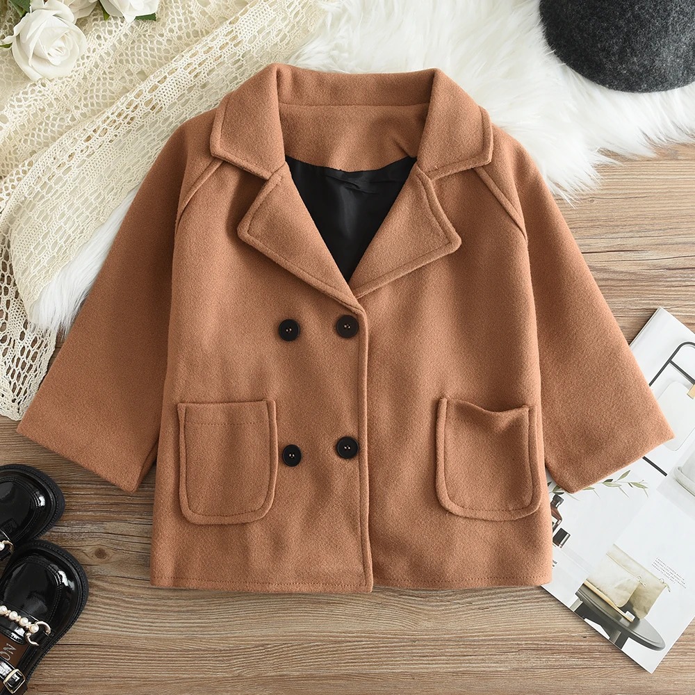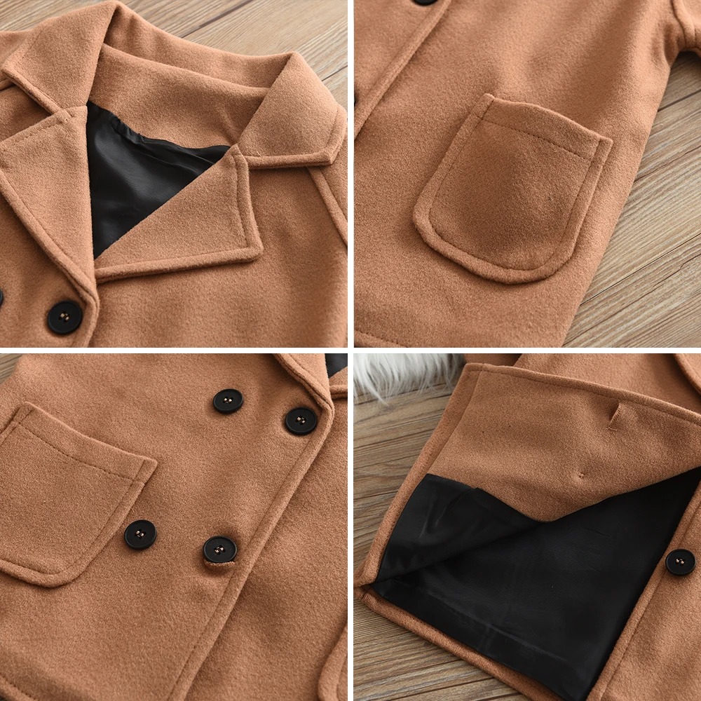 سترة شتوية للأطفال طويلة ودافئة، مزدوجة الصدر مع ياقة تلبيب أنيقة. مصنوعة من الصوف للحفاظ على دفء الطفل في الخريف والشتاء، بتصميم مريح يناسب الرضع والأطفال. معطف خارجي أنيق عملي يمنح طفلك مظهرًا راقيًا في الأيام الباردة.