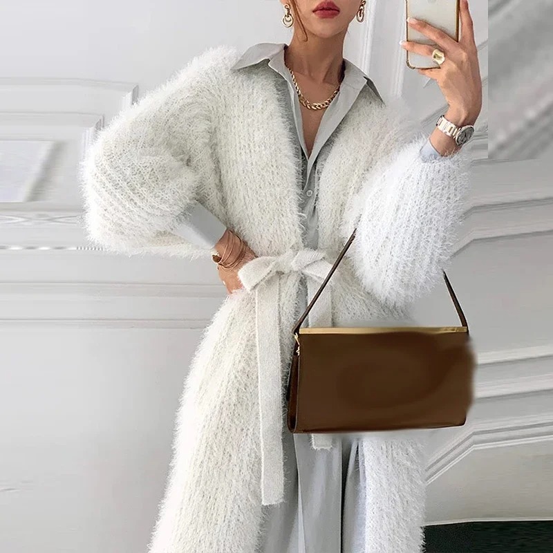 سترة تريكو ناعمة وأنيقة من فرو الأرنب الصناعي، بتصميم دانتيل راقٍ ولمسة فاخرة. تأتي بأكمام طويلة وقَصّة مريحة مناسبة للخريف والشتاء. سترة أحادية اللون تمنحك مظهرًا عصريًا ودافئًا يناسب الإطلالات اليومية والمناسبات.