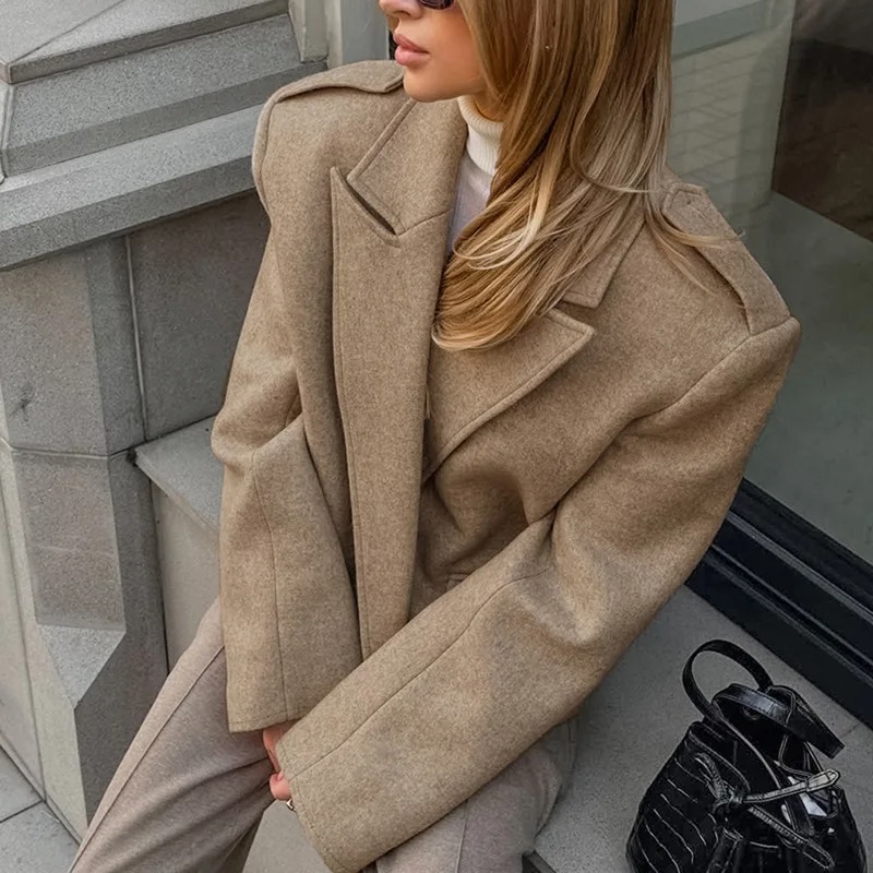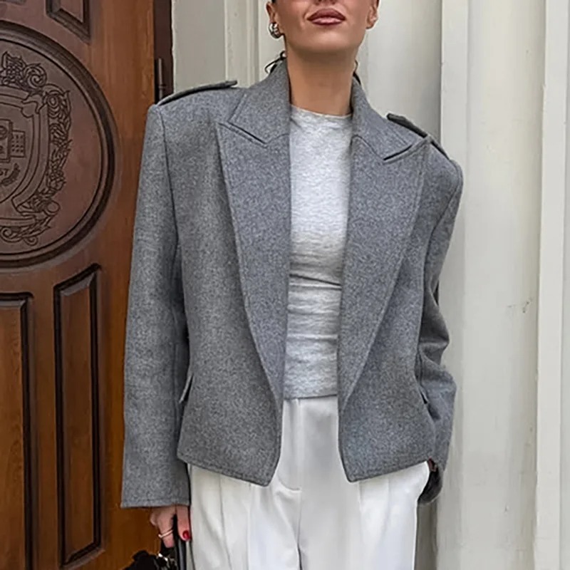 سترة نسائية أنيقة لخريف وشتاء 2025 بتصميم فضفاض مريح، مصنوعة من مزيج الصوف عالي الجودة بلون رمادي كلاسيكي. تأتي بطية صدر أنيقة وأكمام طويلة تمنحك دفئًا وإطلالة عصرية مناسبة للتنقل اليومي وموضة الشارع. معطف خفيف مثالي لأيام البرد، يجمع بين الراحة والأناقة في موسم الشتاء